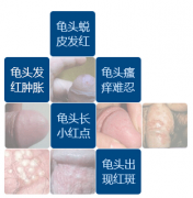 2、白色念珠菌性龟头炎的症状:在包皮龟头上可见红斑,表面光滑并有小疱疹,边缘较清楚,急性发作时有糜烂和渗液。